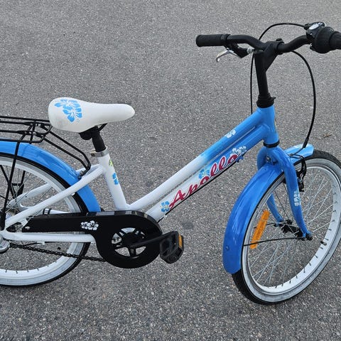 Fin och praktisk barncykel i gott skick. 3 växlar som fungerar fint. Hand och fotbroms, båda fungerar som de ska.