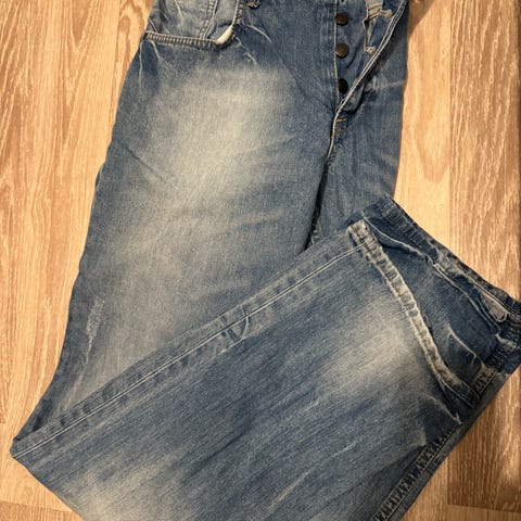 Nya jeans med raka ben och normalhög midja. Gylfen stängs ner med dragkedja .