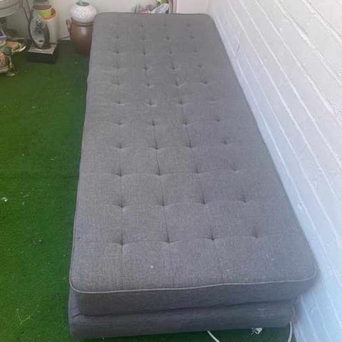 Använd fåtal gånger som extrasäng. Inköpt 2025. Då vi numer använder vår gamla dubbelsäng som extrasäng, behövs denna inte längre.