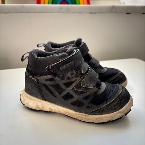 Svarta sneakers från Kuling i stl 26 med vit sula. Kardborreband och dragflik bak som gör dem enkla att ta på och av. Waterproof.