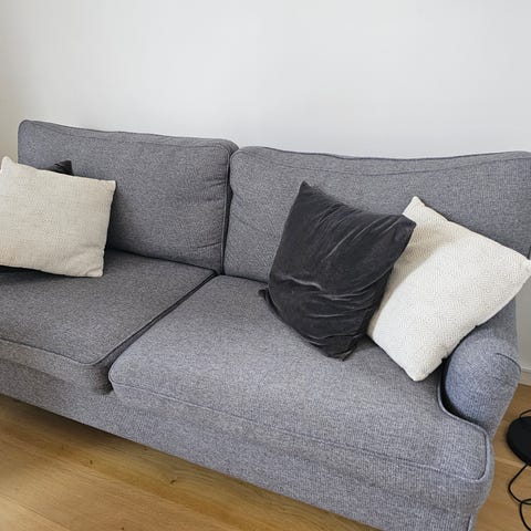 Stilren svart/mökgrå soffa med träben som är varsamt använd