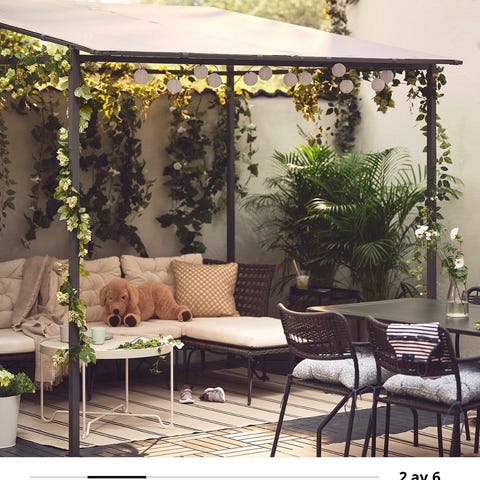 Fin paviljong med ställning i grå metall och vitt tyg. Jag har använt den en gång för ett bröllop, köpte den begagnad. Funkar bra till fest eller vardag. Helt okej skick!