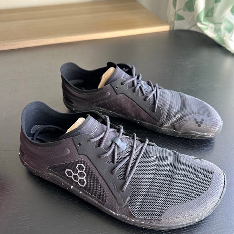 Vibram FiveFingers Evo svarta med snabbsnörning och tunn, flexibel sula, stl 46. Gul innersula med märkning som syns på bilden. Säljes pga felköp (lite för stora för mig).
