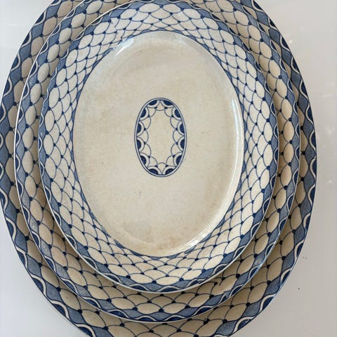 Handgjorda och handmålade blå tallrikar, assietter samt uppläggningsfat från Portugal - Mateus.