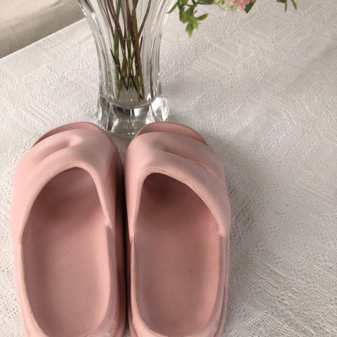Rosa sommartofflor i stl 41 med öppen tå och enkel rem över foten. Mjuk sula med struktur och mönstrad undersida.