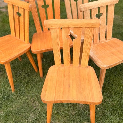 STOLAR, 12 st, böjträ, 1900-talets andra hälft, stapelbara. Sitthöjd ca 46 cm. Bruks- och åldersrelaterat slitage. Hämtas av köparen efter överenskommelse.