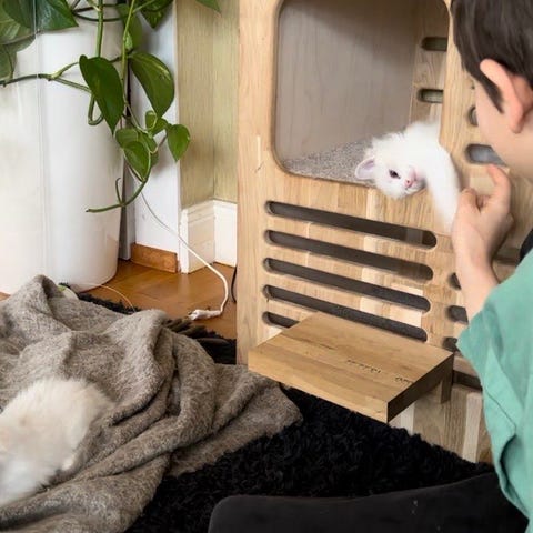 Exklusiv kattmöbel i trä med klösstång. Nypris 5500