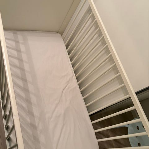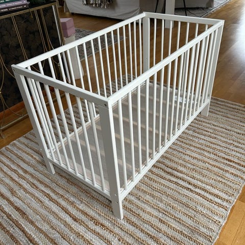 Säljer våran spjälsäng i modellen Hensvik från IKEA.