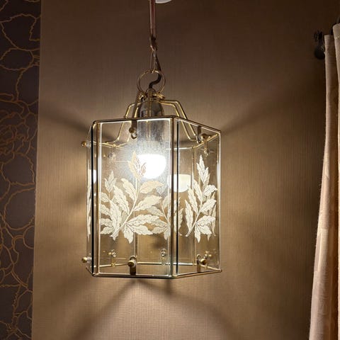 Retro, äldre taklampa i mässing och glas