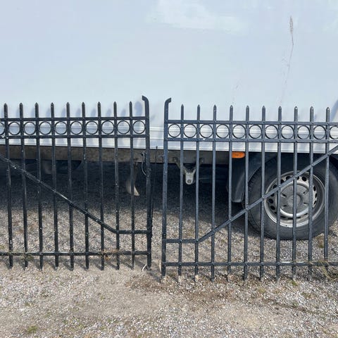 Antik järnvägsgrind i järn