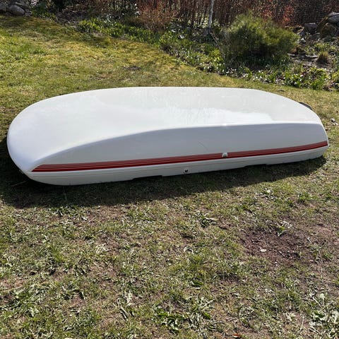 Mycket fin och rymlig takbox. Takbågar som passar på bl.a Volvo V70/XC70 medföljer.