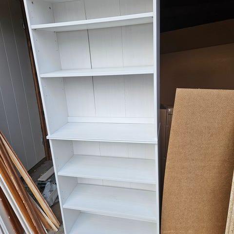 IKEA Billyy i furu med flera hyllplan. Passar bra för böcker, prylar eller förvaring i vardagsrum eller kontor.