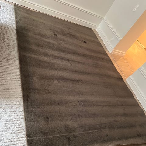 Matta i mjuk rya. Mattan är otroligt len, som en kaninpäls, och den tunna vackra och tätt sittande luggen skapar en böljande mattan beroende åt vilket håll man drar mattans strån.