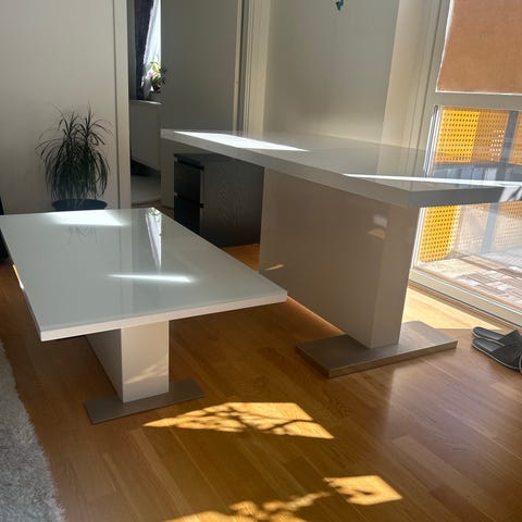Matbord ca 180x80cm, finns slitage men går säkert att rusta upp för den som har lite kraft :) Mörkbrunt med mörkgrå ben.