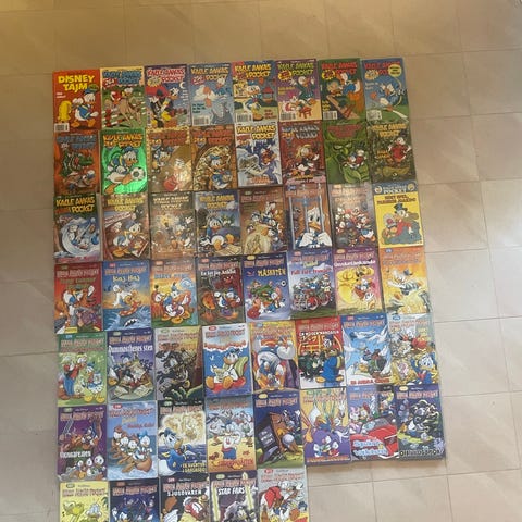Samling med Kalle Anka pocketböcker med blandade omslag och serier. Fina för den som gillar Disney-serier och vill fylla på bokhyllan.