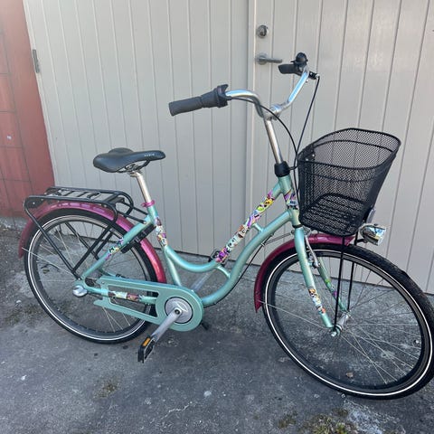 Flickcykel med korg. Rosa. Riddarholmen