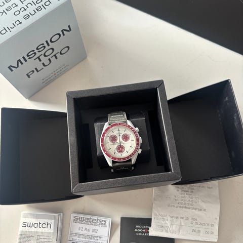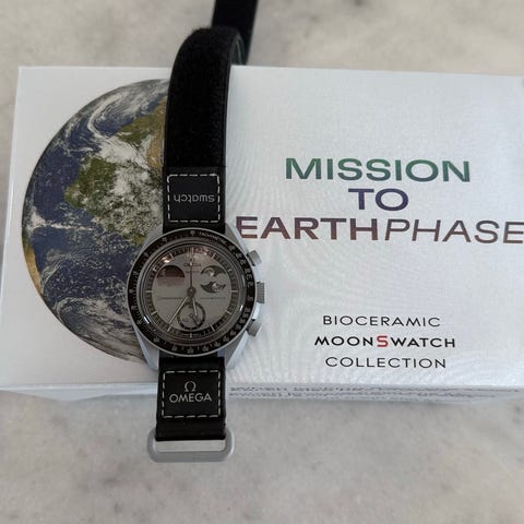 Omega swatch earth dessert med låda, kvitto, cert och påse!