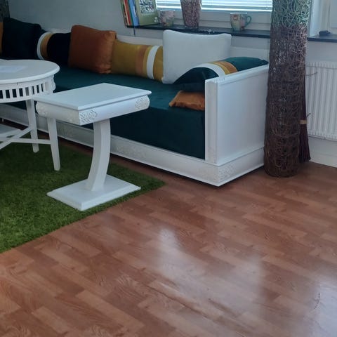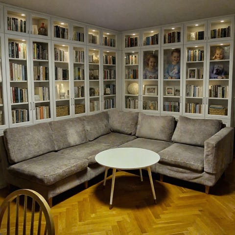 Bäddsoffa och vitrinskåp