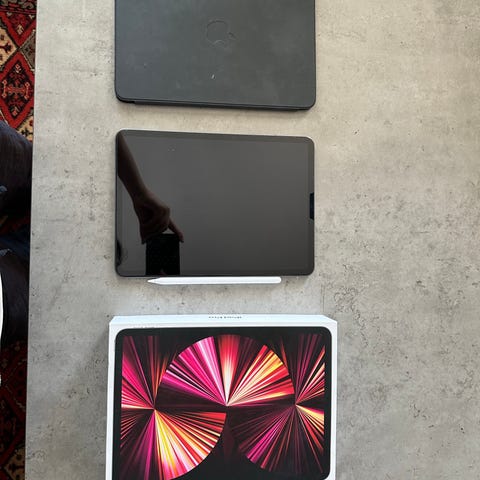 Jättefint skick knappast använd, sitter skärmskydd och har alltid haft skal. Följer med laddarsladd, två skal, och Apple Pencil som också är iprincip ny och kartong.