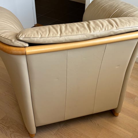 En pall tillhörande fåtöljen följer med i priset.