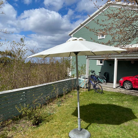 Stadig parasollfot Brage från Brafab i betong. Har rör i metall för att fästa parasoll upp till 58 mm bredd. Vikt 50kg.