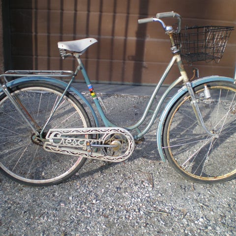 Röd Monark stadscykel för dam med 28" hjul och ramstorlek M. Utrustad med pakethållare bak, skärmar och vridreglage på styret.