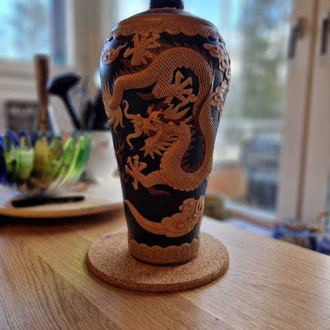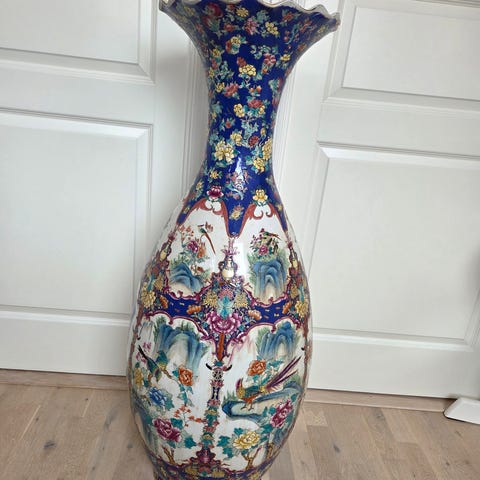 Stor och mycket dekorativ keramikurna/kanna i kinesisk stil. Hela 75 cm hög, vilket gör den till ett riktigt blickfång i hemmet, entrén eller trädgården.