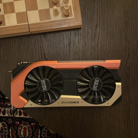 Nvidia GeForce GTX 1070 grafikkort med blower-kylare. Har flera displayutgångar inklusive HDMI och DisplayPort.