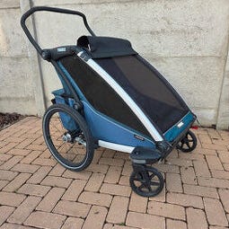 Thule Chariot cx1, i gott använt skick. Plats för ett barn, med broms på styret inkl parkeringsbroms. Fjädrat chassi, inbyggt solskydd, stor förvaring mm.