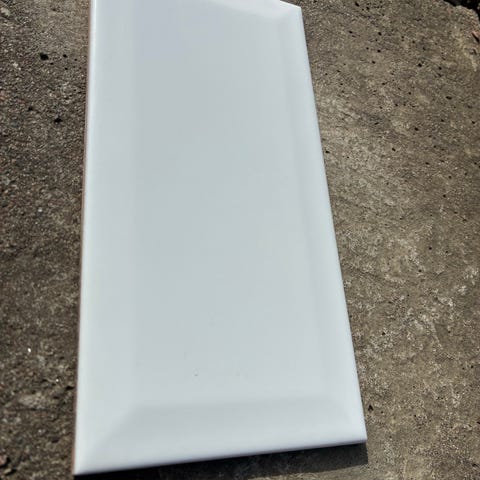 Vitt rektangulärt väggkakel från Fabresa i storlek 10x20 cm, fasad kant. Säljes i kartonger, plattorna är fasade och passar bra till t.ex. kök. Räcker till 1 kvadratmeter.