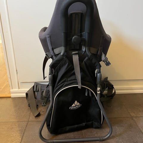 Bärstol från North 13.5 i svart/grå med vadderad sits och ryggstöd för barnet. Justerbara axelremmar, midjebälte och flera fickor och remmar för förvaring och passform. Inkl regnskydd.