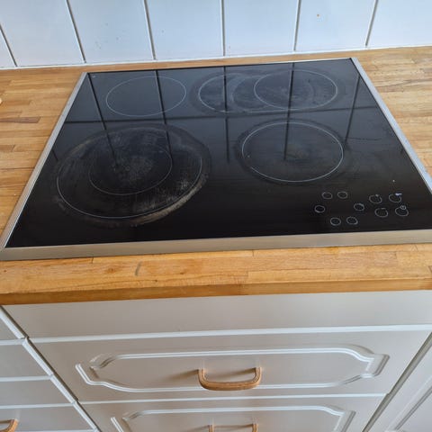 Siemens induktionshäll med flera kokzoner och touchpanel fram. Stilren svart glasyta som ligger infälld i bänkskivan.