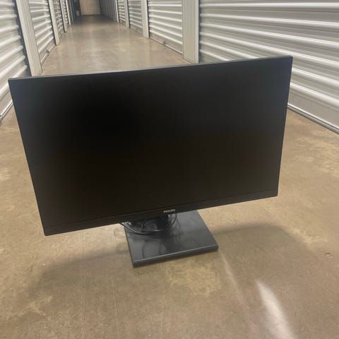 ASUS 24-tums skärm i svart med tunn ram och rund fot. Har knappar på framsidan nere till höger för inställningar.