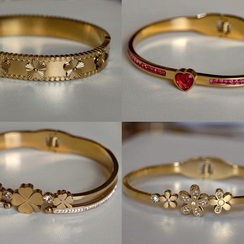 Säljer ett stilrent armband i klassisk H-design med rosa emalj och guldfärgad metall. En riktig statement-detalj som ger en exklusiv look direkt – perfekt till både vardag och fest.