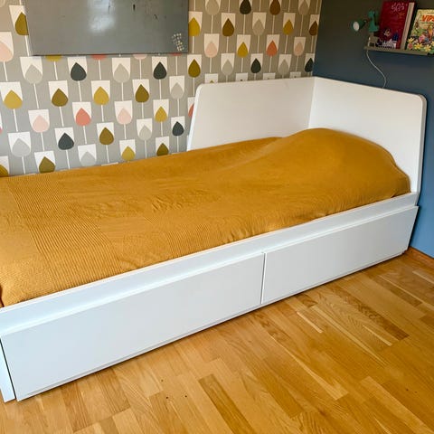 Vi har haft den i barnrummet men säljer nu då tonåringen behöver en större säng.