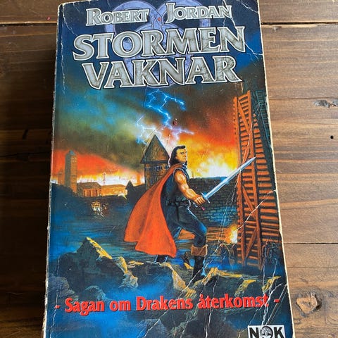 Fantasybok: En krona av svärd ur serien Sagan om Drakens återkomst. Svensk utgåva från Natur och Kultur med text på baksidan om staden Ebou Dar och kampen mot den mörka kraften. Pocket.
