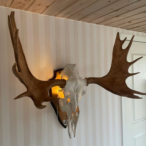 Älghorn / skalle monterat på en Trofésköld