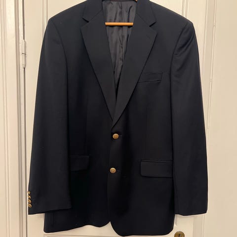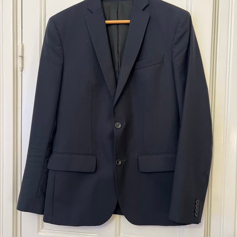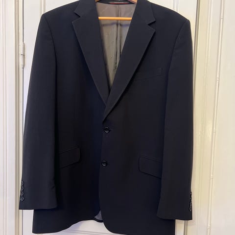 Svart kavaj/blazer från italienska märket Corneliani i ull, stl 54. Två knappar fram, flera fickor (endast bröstficka) och helfodrad insida.