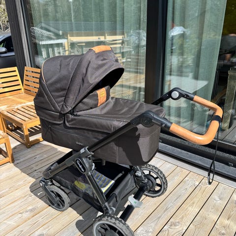 Både liggdel och sittdel ingår, vilket gör att vagnen kan användas från nyfödd och uppåt.