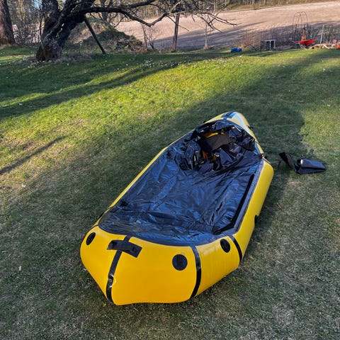 Hydro-Force lite-rapid X2 uppblåsbar kajak i orange färg med plats för två personer. Behöver kompletteras med nya paddlar.