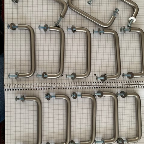 De är i fint skick, kan dock finnas ett märke på någon, alla skruvar finns men ett handtag saknar plastbrickan!