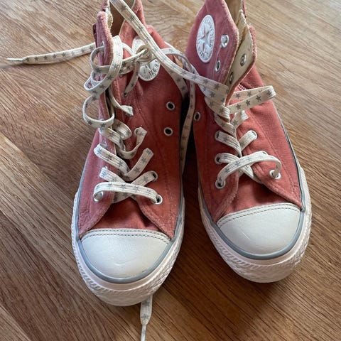 Svarta Converse All Star i stl 35 med vita tåpartier och stjärnmönstrade skosnören. Dragkedja på sidan och klassisk rund Converse-logga på skaftet.