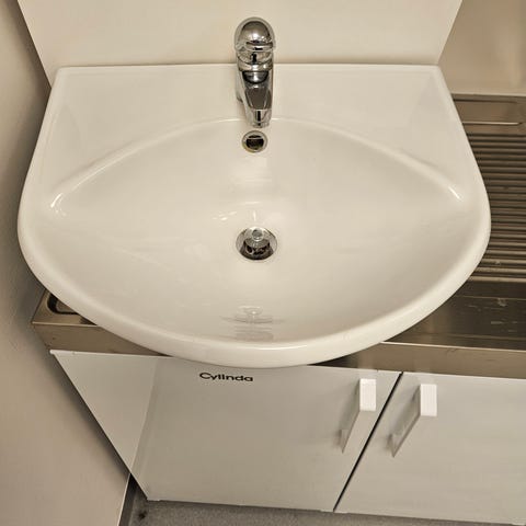 Aldrig stått i ett badrum, då kommoden har använts som sidobord.