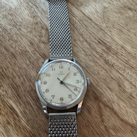 Kända 2640-3 med 283 verket, 1950 om jag läste rätt. En av de finaste patina formen jag har någonsin sett (guldig patina på urtavlan som ni ser, utan större prickor eller deformation tycker jag, ni bedömer) Håller tiden bra (ca +-30 sek per dag) lite låg amplitud på 134° Original krona verkar det som ni ser, byter tid och fungerar