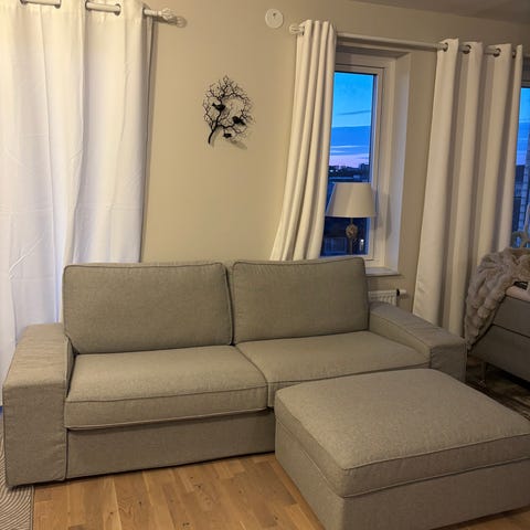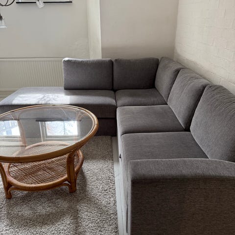 3-sits soffa från Mio med divan, 203x155cm. Kan behöva en tvätt men annars i fint skick. Hund finns i hemmet.