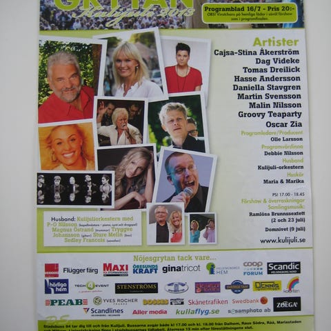 Från 19/7 2011. Programblad med allsånger från Kulijuli i Helsingborg.