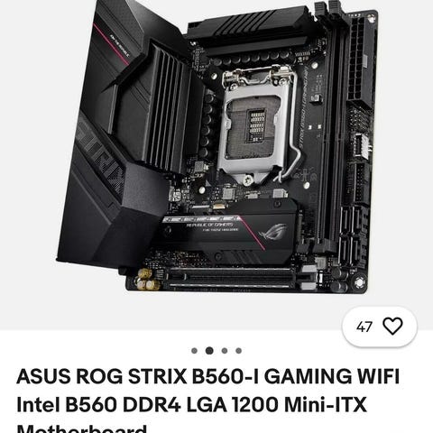 Moderkort: Asus rog B560-I Gaming Wifi & Bluetooth: 750kr (BARA FÖR JAG ÄR INTE SÄKER PÅ OM DEN ÄR DEFEKT)