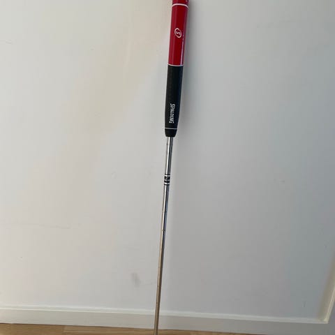 Odyssey O-Works 7 putter med svart klubbhuvud och tydliga vita siktränder. Har stålskaft och mönstrad träffyta med röd detalj på sidan. Head cover ingår.