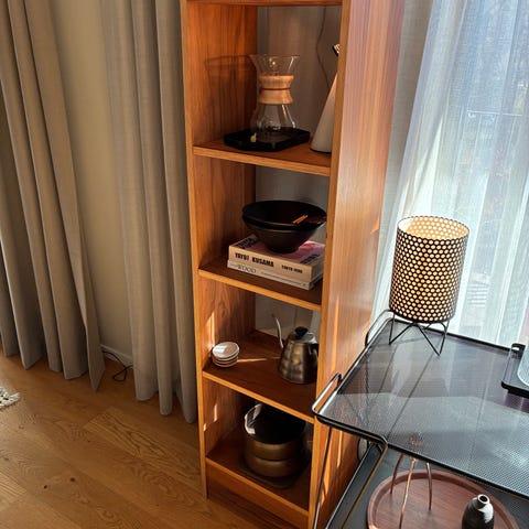 Sex vägghängda kuber/hyllor, varav en med dörr säljes.