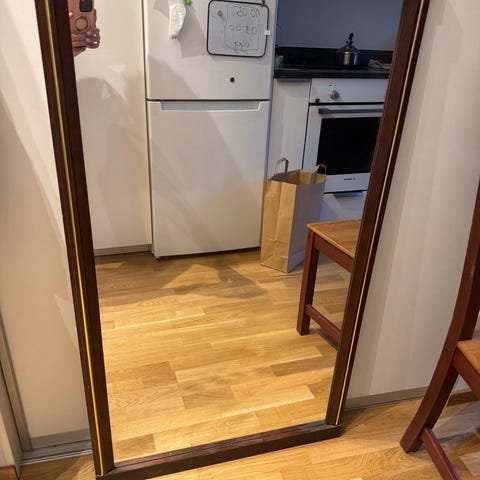 Exklusiv Vintage Spegel från Nybrofabriken Fröseke, modell Attaché i palisander, mått 125x70 cm. Stabil träram med upphängning på baksidan.